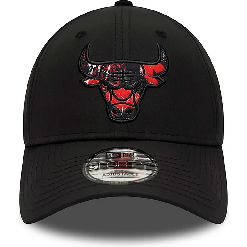 Schwarze verstellbare 9FORTY Print Infill Kappe der Chicago Bulls NBA von New Era