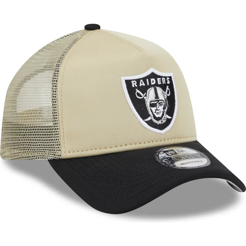 Beige und schwarze 9FORTY A Frame All Day Trucker Kappe der Las Vegas Raiders NFL von New Era