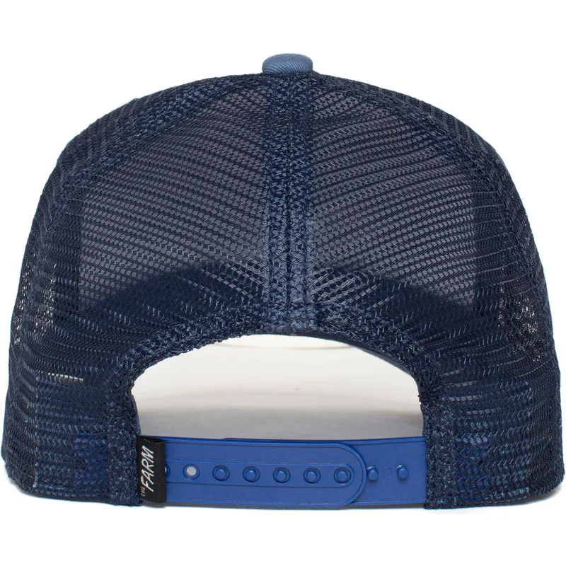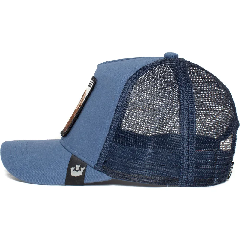 Goorin Bros. Big Bear Truckin The Farm blaue Trucker-Kappe mit Bärenmotiv.