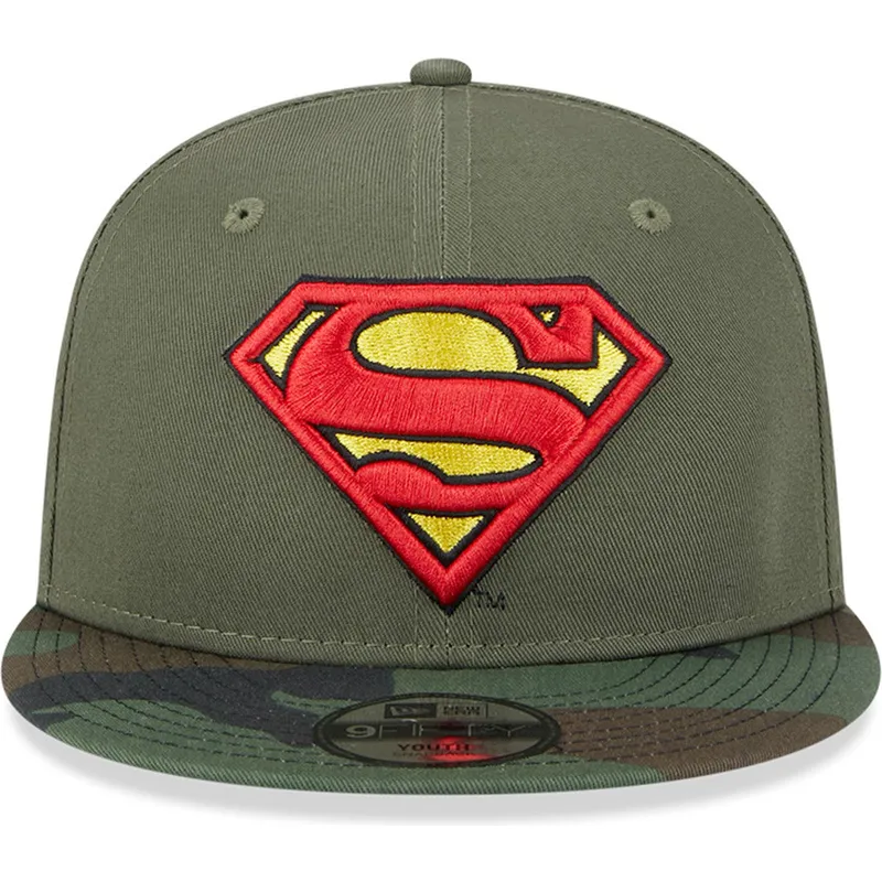 Die grün-tarnfarbene Snapback-Schiebermütze Superman DC Comics 9FIFTY für Jungen von New Era ist die perfekte Ergänzung zu jedem lässigen und urbanen Outfit. Mit ihrem auffälligen Design und den charakteristischen Farben von Superman wird diese Mütze zum Favoriten jedes Kindes, das einen modernen Look voller Persönlichkeit zeigen möchte. Der Snapback-Verschluss ermöglicht eine einfache Anpassung und garantiert jederzeit Komfort und Sicherheit. New Era, eine führende Marke auf dem Kappenmarkt, hat dieses einzigartige Stück speziell für kleine Fans des Comic-Superhelden geschaffen.