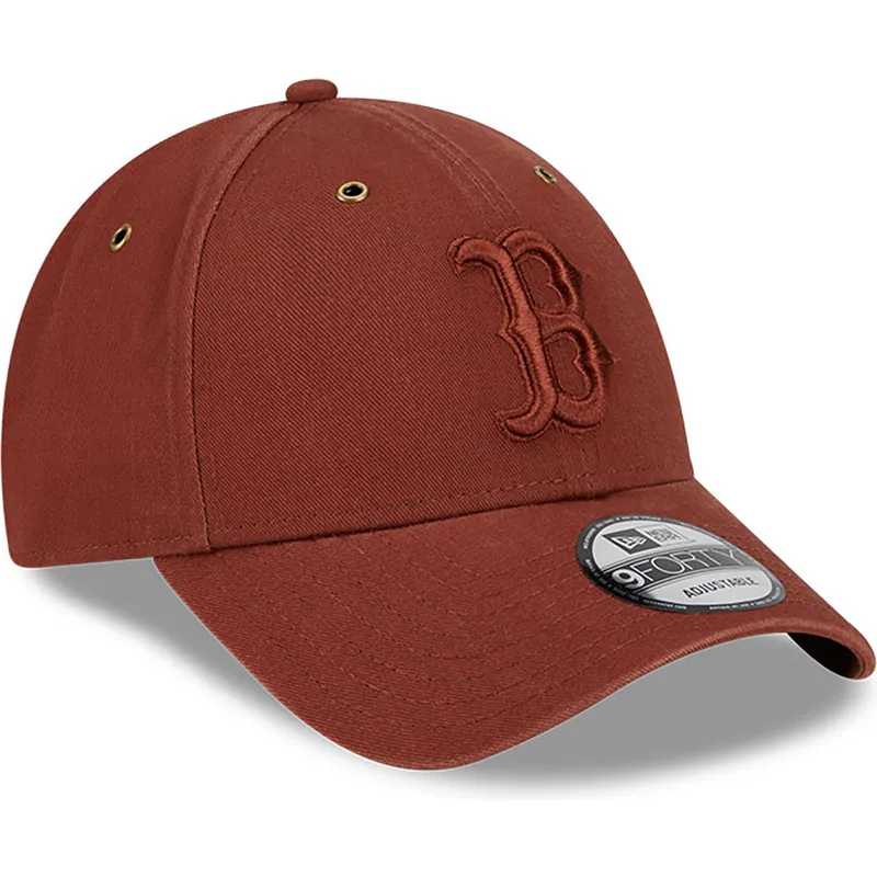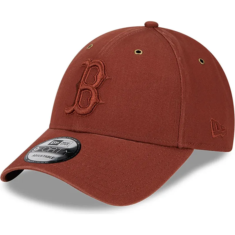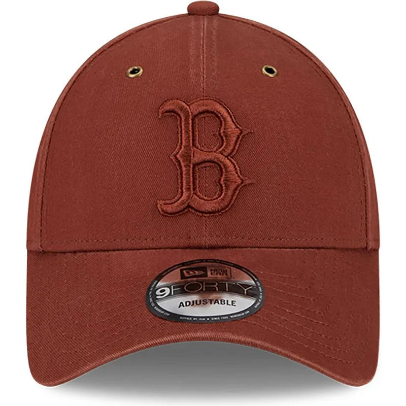 Boston Red Sox MLB 9FORTY Verstellbare braune Kappe mit gebogenem Schirm und braunem Logo aus gewaschenem Canvas von New Era