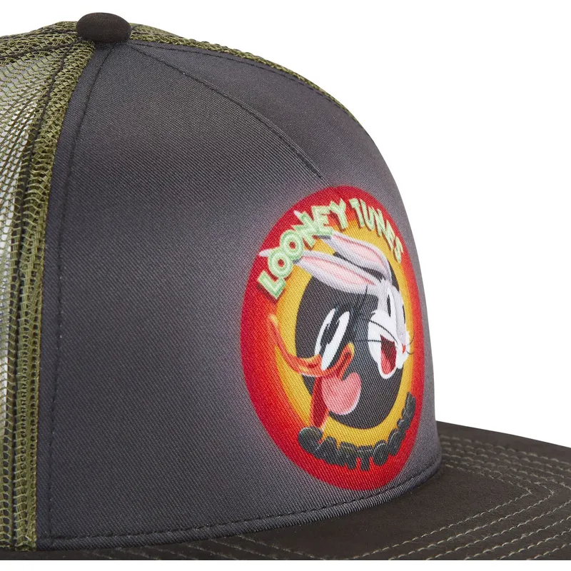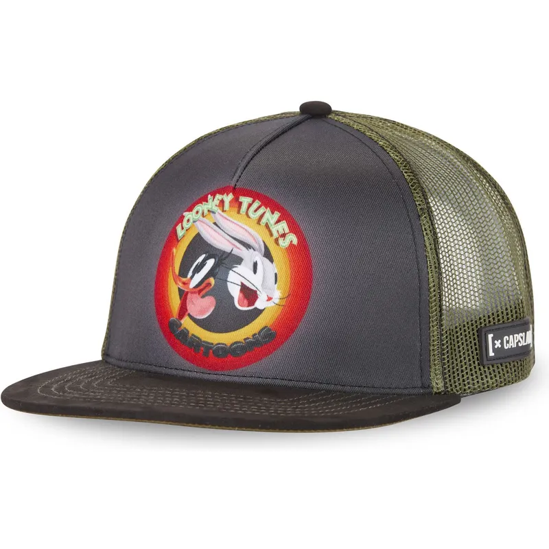 Grau-grüne Flat Brim Trucker Cap Bugs Bunny und Daffy Duck LOO8 RIN Looney Tunes von Capslab