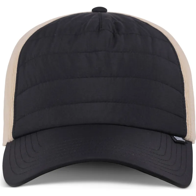 Die geschwungene schwarz-beige HFT Puffy Nylon Snapback-Kappe von Djinns passt perfekt zu jedem Freizeit- oder Sportoutfit. Diese aus hochwertigem Nylon gefertigte Kappe garantiert Haltbarkeit und Widerstandsfähigkeit und ist ideal für den täglichen Gebrauch. Der Kontrast zwischen Schwarz und Beige verleiht ihm einen modernen und eleganten Touch, während seine geschwungene Form ihn jedem Gesichtstyp schmeichelt.