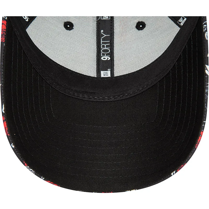 Schwarz-rote verstellbare 9FORTY Kappe mit floralem Allover-Print von Manchester United Football Club Premier League von New Era