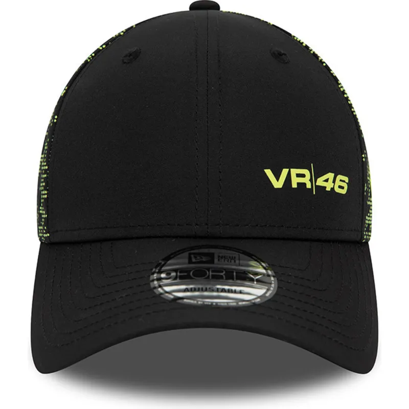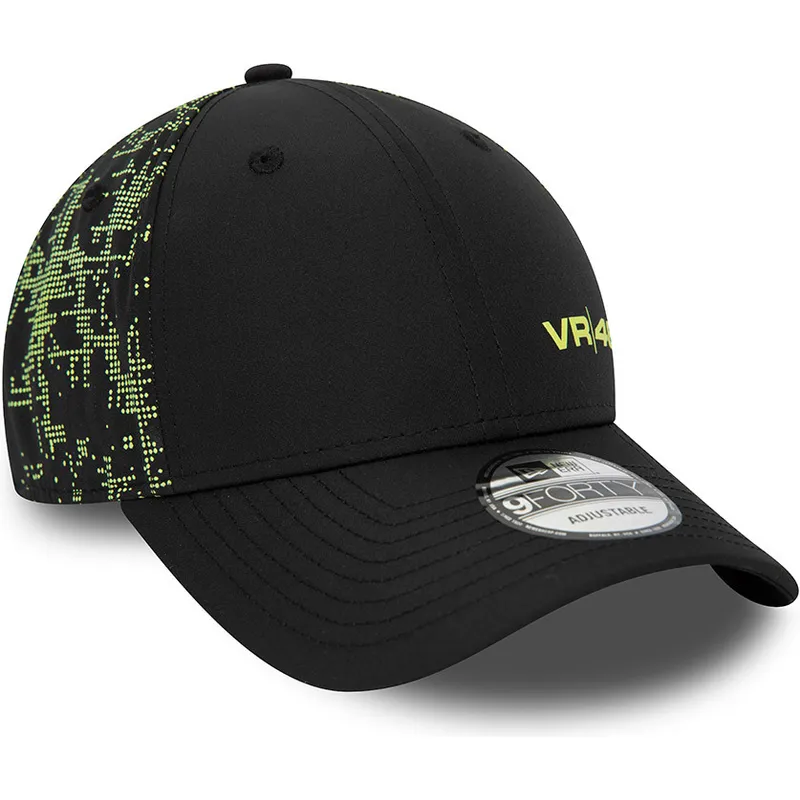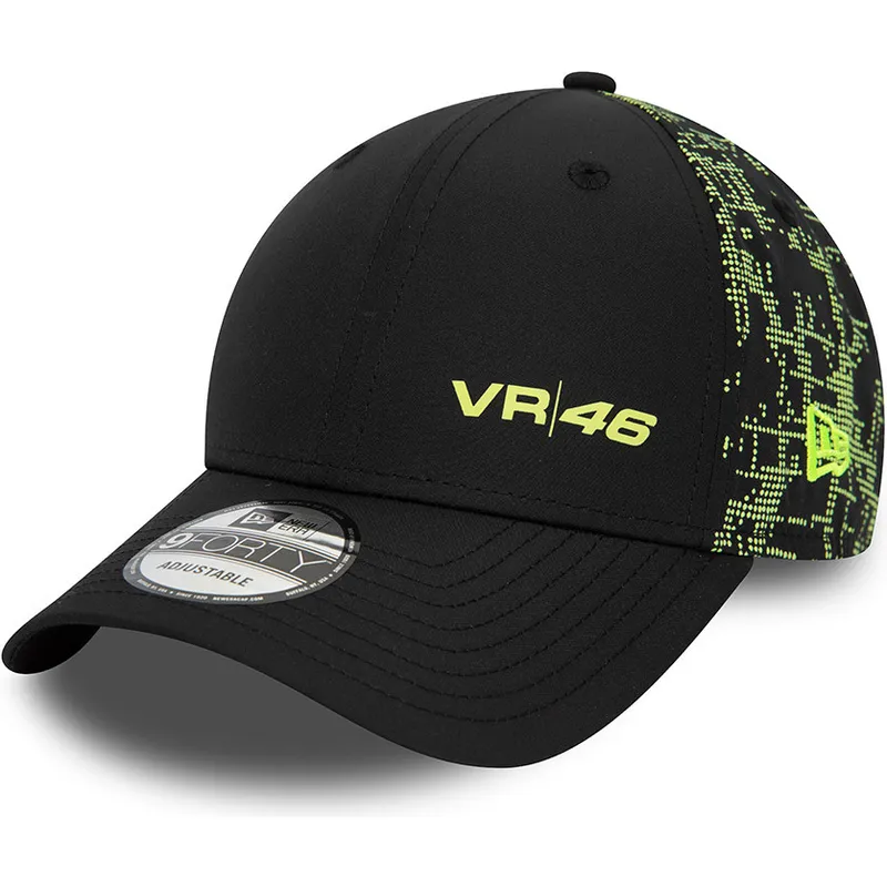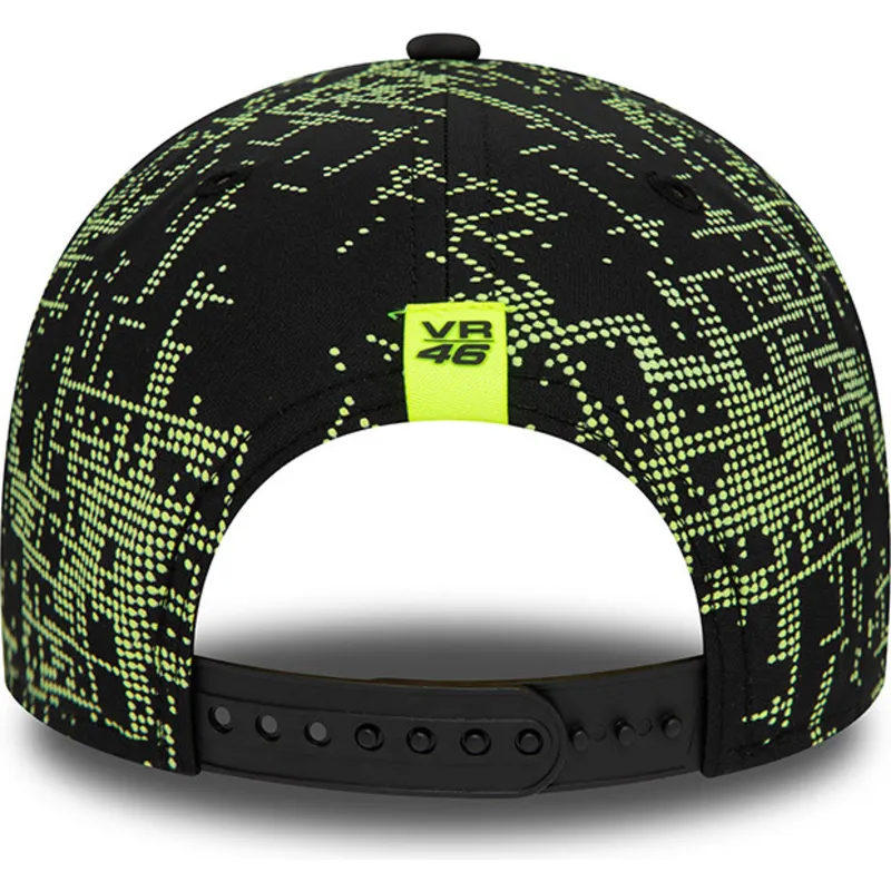 Schwarze 9FORTY Poly Print Snapback-Kappe mit gebogenem Schirm von Valentino Rossi VR46 MotoGP von New Era.