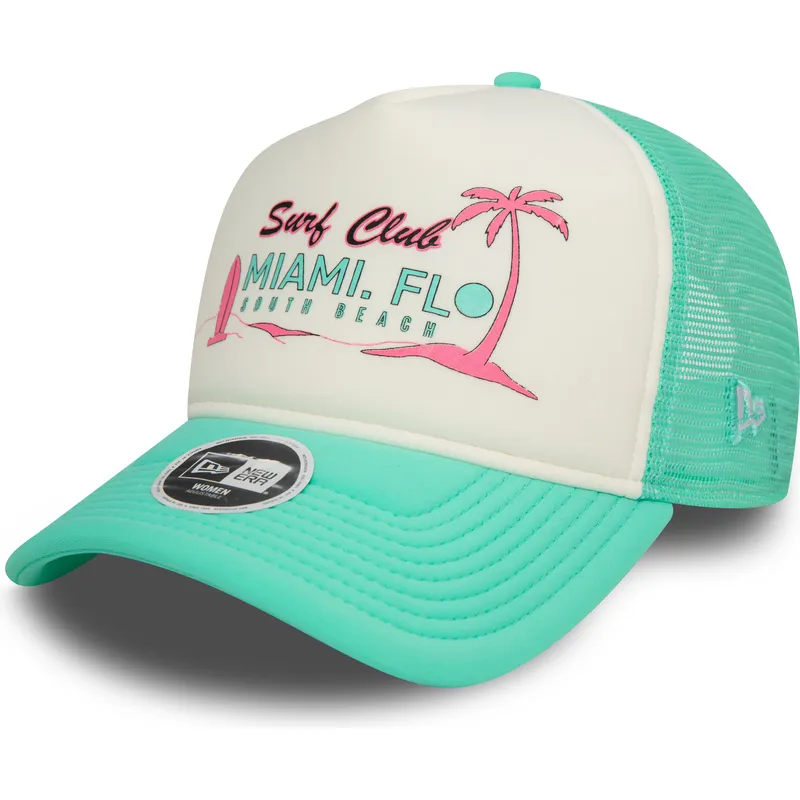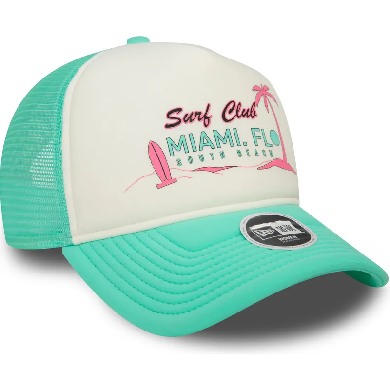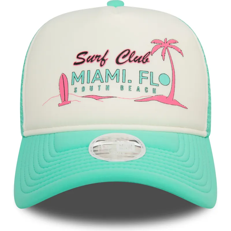New Era Miami Surf Club Florida Damen Trucker-Kappe in Weiß und Grün mit A-Frame-Schaumstofffront