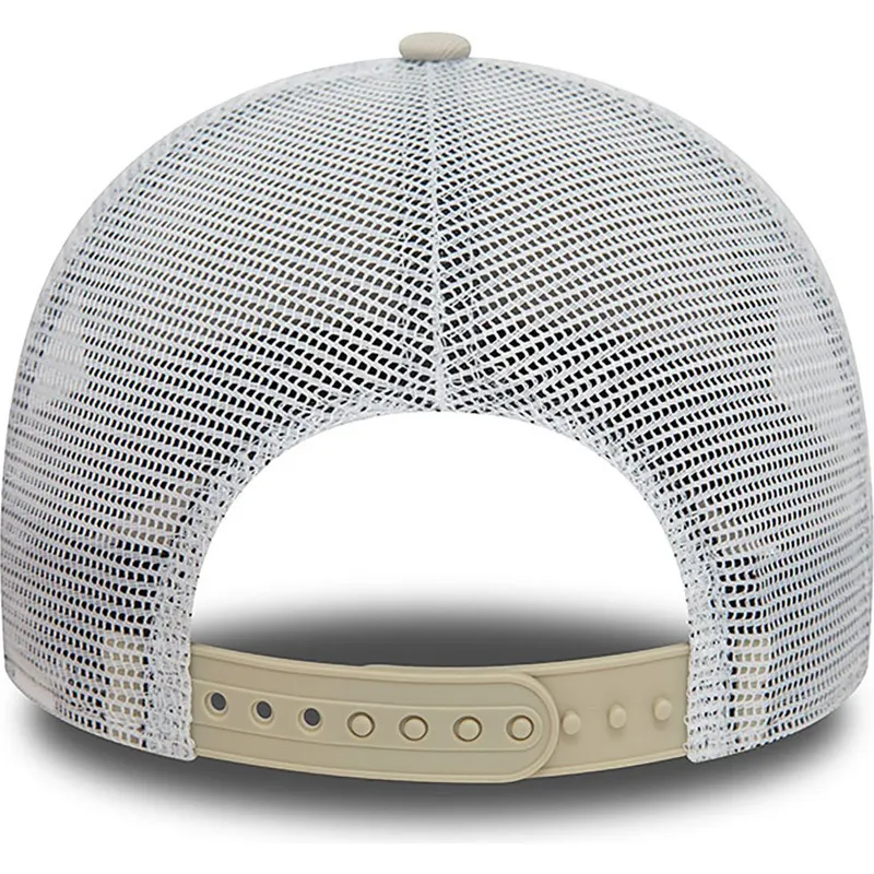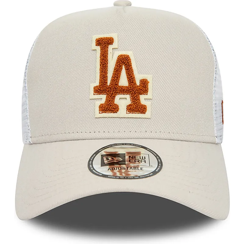 Beige-weiße Trucker-Kappe mit braunem Logo A Frame Boucle der Los Angeles Dodgers MLB von New Era.