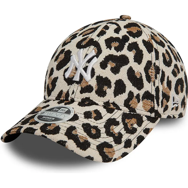 Verstellbare Frauenkappe mit gebogenem Schirm im Leopardenmuster 9FORTY Jacquard der New York Yankees MLB von New Era