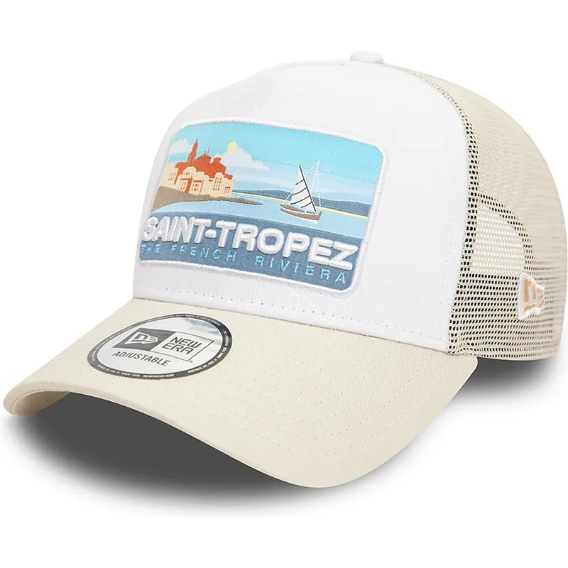 Die beige Trucker-Kappe Saint-Tropez Cities and Beaches A Frame Summer von New Era ist die perfekte Wahl für alle, die ein vielseitiges, hochwertiges Accessoire suchen. Mit ihrem Unisex-Design und dem Snapback-Verschluss passt sich diese Kappe jedem Kopftyp und Stil an. Die beige Farbe dieser Mütze verleiht ihr einen Hauch von Eleganz und Raffinesse, perfekt für jeden Anlass.