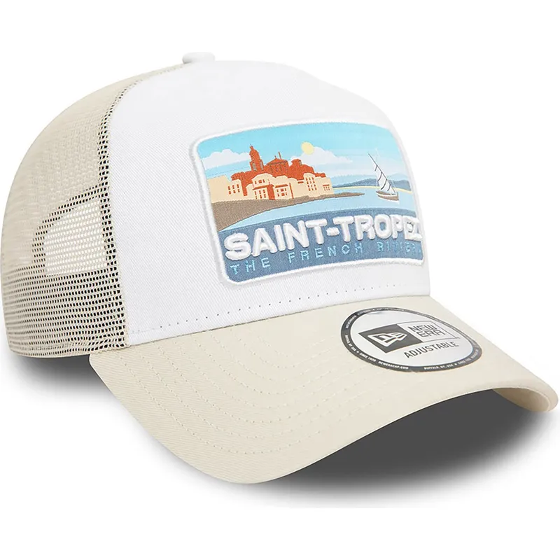 Diese beige Trucker-Kappe „Saint-Tropez Cities and Beaches A Frame Summer“ von New Era ist die ideale Option für alle, die Komfort und Stil in einem einzigen Accessoire suchen. Mit ihrem Unisex-Design passt diese Kappe zu jeder Art von Outfit, egal ob leger oder eher formell. Der Snapback-Verschluss garantiert eine perfekte Passform, während das New Era-Logo auf der Vorderseite einen Hauch von Authentizität und Originalität verleiht.
