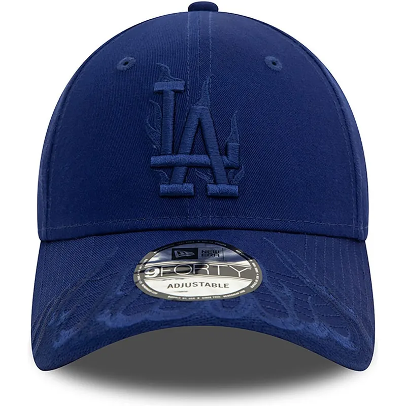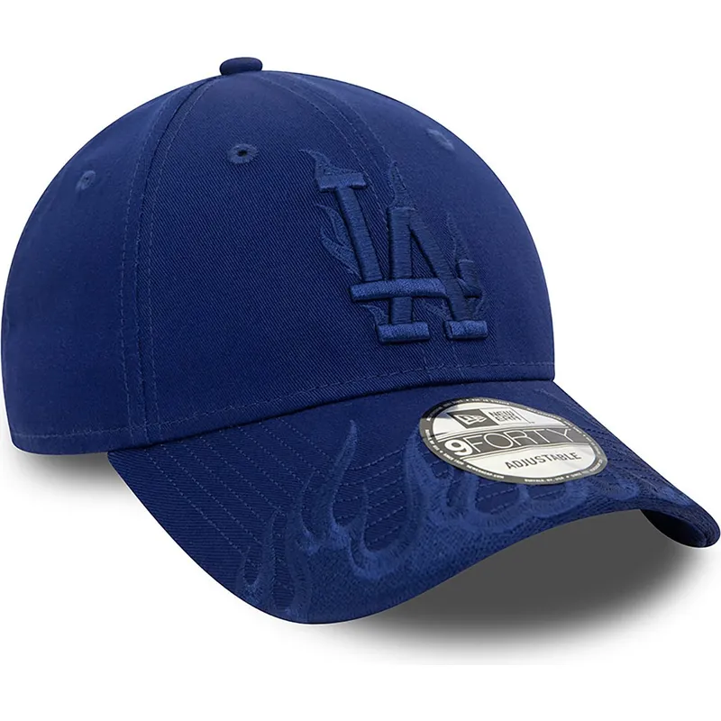 Verstellbare blaue gebogene Kappe mit blauem Logo 9FORTY Flame der Los Angeles Dodgers MLB von New Era