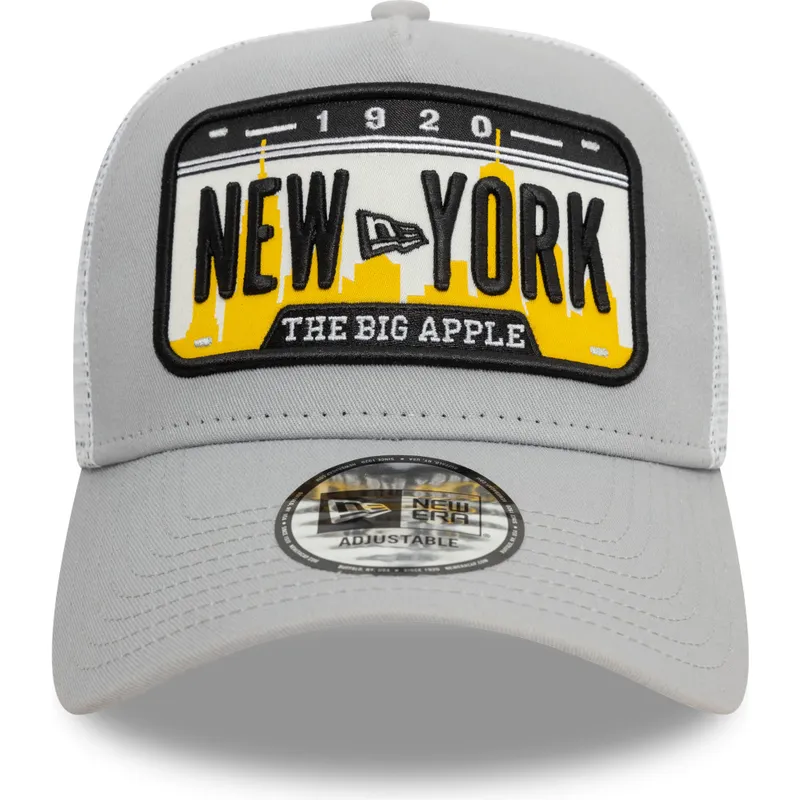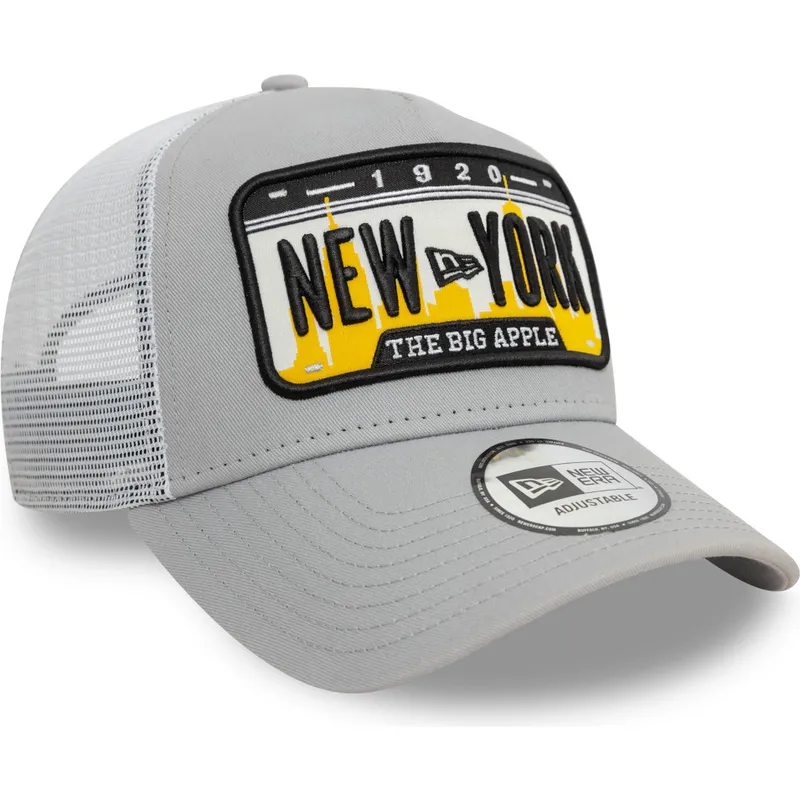 Grau A Frame License Plate Trucker Cap von New York Cities and Beaches von New Era