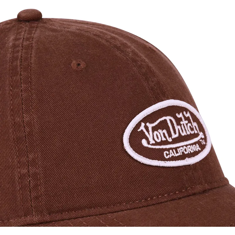 Das Design der Von Dutch LOG COF-Kappe ist zweifellos ihre größte Attraktion. Die braune Farbe verleiht ihm einen Hauch von Eleganz und Raffinesse und lässt sich perfekt mit jedem Freizeitoutfit kombinieren. Die Rundung des Schirms sorgt für einen sportlichen und urbanen Touch, ideal, um einen Streetwear-Stil mit Persönlichkeit zur Geltung zu bringen. Darüber hinaus verleiht das auf der Vorderseite aufgestickte Von Dutch-Markenlogo dieser Kappe einen Hauch von Authentizität und Originalität.