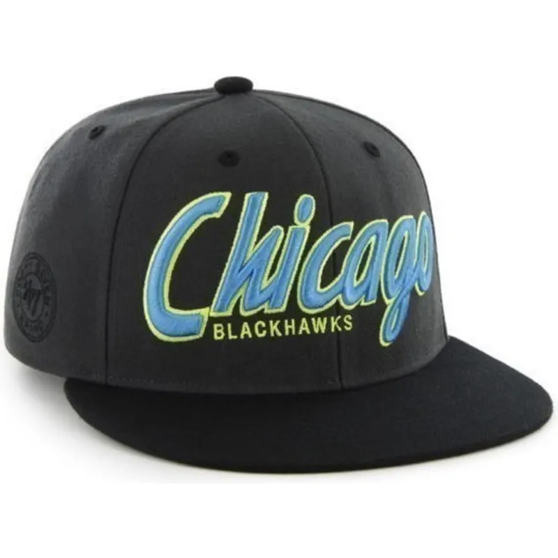 Schwarze Snapback-Flachkappe mit Chicago Blackhawks NHL-Logo von 47 Brand