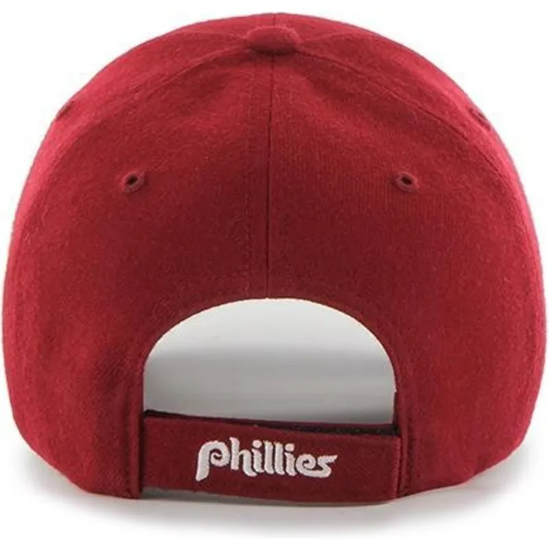 Rote verstellbare Kappe mit gebogenem Schirm und klassischem Philadelphia Phillies MLB MVP Cooperstown Logo von 47 Brand