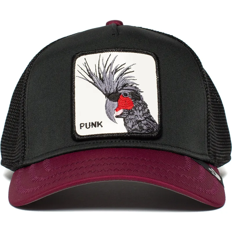 Schwarze und kastanienbraune Trucker-Kappe Punk-Vogel Sqwauk von Goorin Bros.
