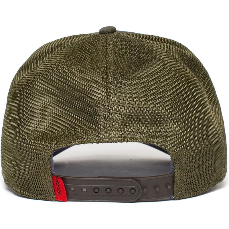 Die Dog Green Trucker Cap von Goorin Bros. Sidekick Fowler's Favourite The Farm ist ein einzigartiges und hochwertiges Stück, das Sie nicht verpassen dürfen. Das Unisex-Design ist perfekt für jeden Erwachsenen, der einen authentischen und originellen Stil möchte. Der Snapback-Verschluss ermöglicht eine bequeme, individuelle Passform für jede Kopfgröße.