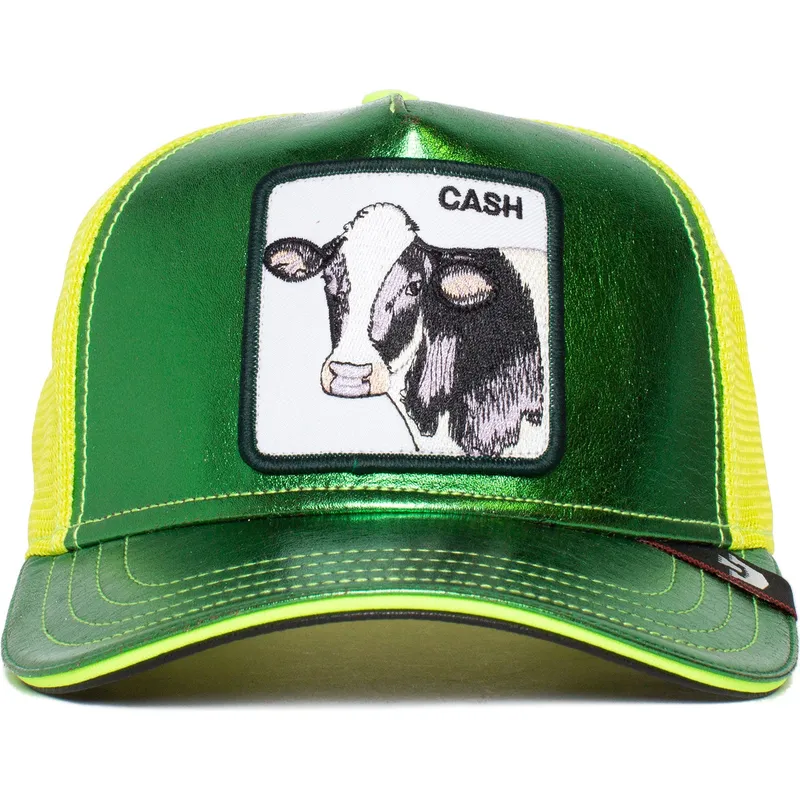 Grüne und gelbe Trucker-Kappe mit Kuh Cash Shine Metallic The Farm von Goorin Bros.